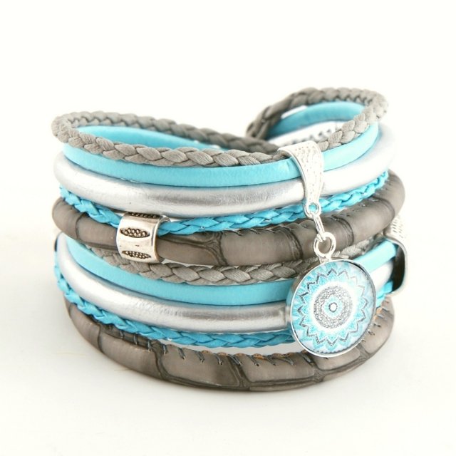 Tagi: #bransoletka z rzemyków, #brasnoletka zwijana, #błękitna, #szeroka bransoletka