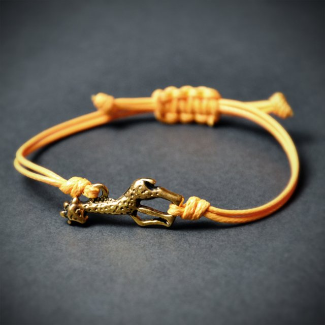 Delikatna bransoletka wykonana z żółtego sznureczka i żyrafy w kolorze złotym. Z możliwością regulacji szerokości.