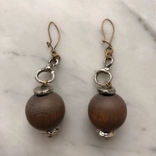 kolczyki vintage z drewnianą kulką z lat 70-tych. długość: 7 cm ...