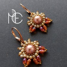 MUSZLE BURSZTYN PERŁY W ZŁOCIE - KOLCZYKI BOHO - NOWE