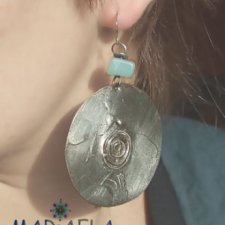 kolczyki wykonane z mosiężnej , fakturowanej blachy. pokrywane cyną, s...