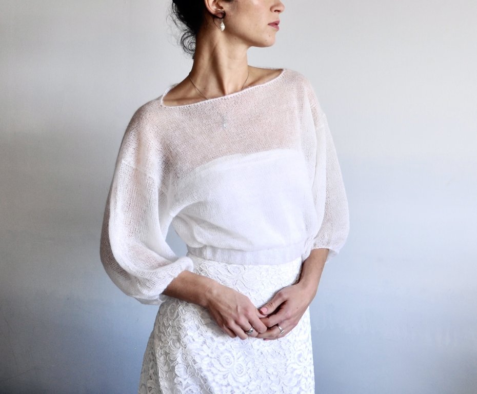 Sweterki, bolerka, szale i chustyDla Panny Młodej, która swój ślub ma zaplanowany na jesień, zazwyczaj bardzo ważne jest znalezienie czegoś co będą mogły narzucić na suknię w przypadku jeśli pogoda nie do końca dopisze. Wiadomo jaka jest nasza jesienna aura, nawet jeśli dzień będzie słoneczny to może nam towarzyszyć lekki chłodek. Fajnie by było gdyby ta narzutka nie zdominowała stylizacji ani nie zakryła całkowicie sukni. Dlatego polecamy na tę okazję ażurowe, delikatne sweterki. W DecoBazaar znajdziecie wiele ręcznie dzierganych propozycji. Dobrze sprawdzą się też chusty w kremowych czy beżowych odcieniach, zwiewne szale z dzianiny lub z jedwabiu a także zgrabne bolerka.